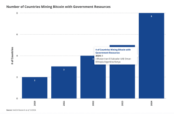 Source: VanEck Research. 8 countries were mining bitcoin in 2024. Bhutan, Iran, El Salvador, the United Arab Emirates, Oman, Ethiopia, Argentina and Kenya.