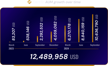 Assets Under Management (AUM): We surpassed $12 million USDC, with $10 million USDC allocated to Earnio Fix.