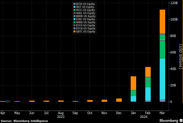 Bitcoin ETFs conducted transactions worth $111 billion in March, nearly triple the amount traded in February and January. Source: Bloomberg Intelligence