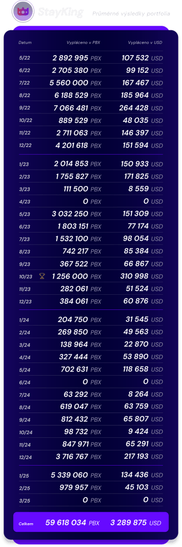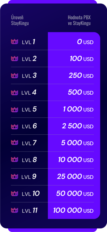 Program StayKing vám umožňuje zastakovat PBX tokeny a získávat odměny odvislé od výkonu celého projektu.