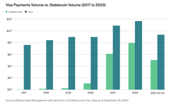 Stablecoiny vs. VISA. Zdroj: Bittwise Asset Management