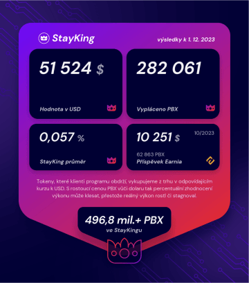 Mezi účastníky královského programu StayKing jsme v listopadu rozdělili 282 061 PBX v hodnotě 51 524 amerických dolarů, tedy přes milion českých korun.