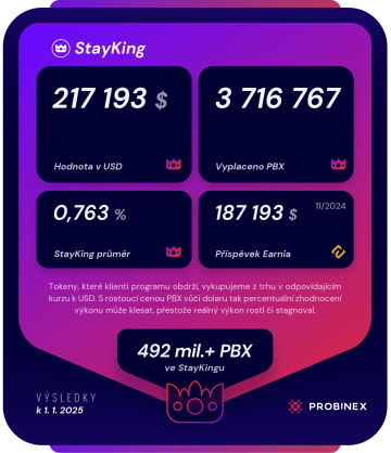 Před námi je rok 2025, který bude pro Probinex zlomový. Plánujeme podání žádosti o licenci CASP, získání licence od VARA ve Spojených arabských emirátech a další expanzi na evropské trhy. Tyto kroky přinesou růst uživatelské základny, zvýšení objemu spravovaných aktiv v Earniu a vyšší ziskovost našich produktů. Všechny tyto změny mají za cíl posílit roli, a tedy i utilitu PBX v produktech.