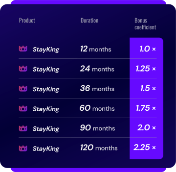 With StayKing, we reward your long-term commitment through a bonus coefficient.